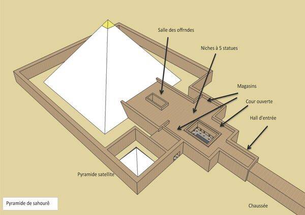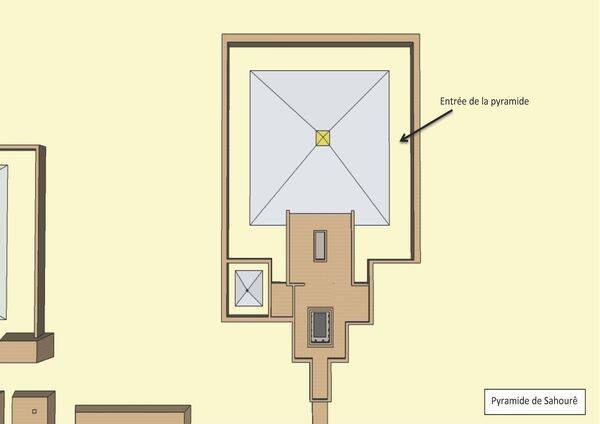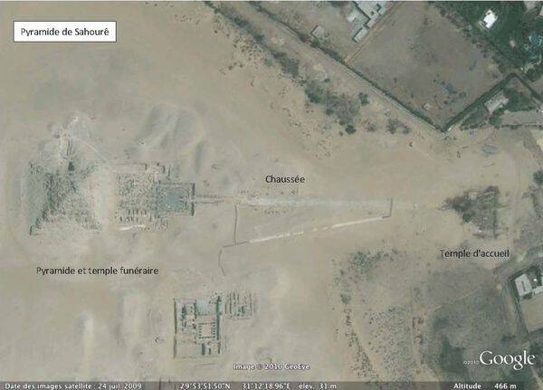 La pyramide, la chaussée et une vue du temple d'accueil, photo de wikipedia: http://fr.wikipedia.org/wiki/Pyramide_de_Sahourê