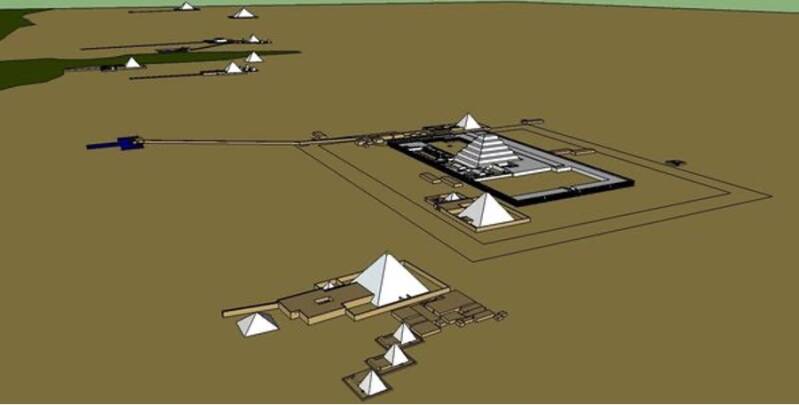 Plan 3D des sites des Saqqarh et au fond, de Dashour.