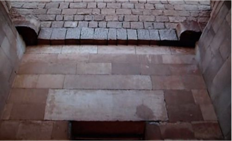 Une niche où se trouvait une statue du roi. Tel que se trouvait le portique d'entrée à sa redécouverte.