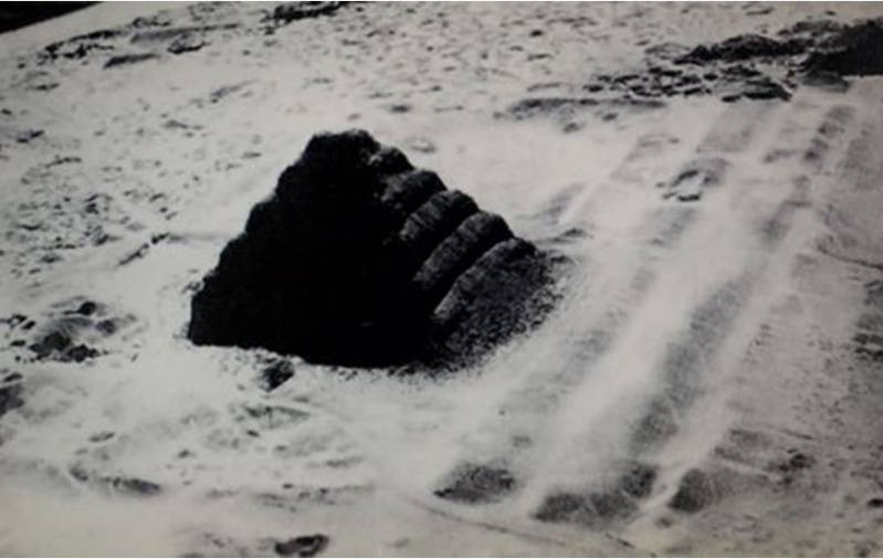 Ensuite, c’est la pyramide ; Elle est construite en petite pierres pouvant être portées par un homme seul. Elles sont posées inclinées à 16° vers l’intérieur, de sorte qu’elles peuvent se tenir seules sans l’aide d’un mortier.