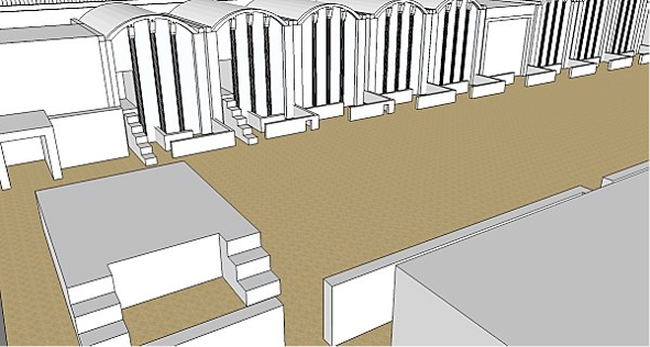 Par contre, au-devant de chacune d'elle l'entrée est faite d'une sorte de chicane, comme pour en rendre l'accès plus difficile, mais encore une fois les portes et les barrières de bois (symbolisées en pierre ) sont ouverte pour l'éternité, ces murets sont une façon de matérialiser le trajet rituel qui mène à des niches, dans lesquelles se trouvaient des statues du roi et qui s'arrêtent là. Les chapelles rappellent seulement les chapelles provisoires qu'ont érigeait pour la fête Heb Sed. Dans le monde des morts, l'apparence suffit, rappelons qu’elles sont pleines et factices.