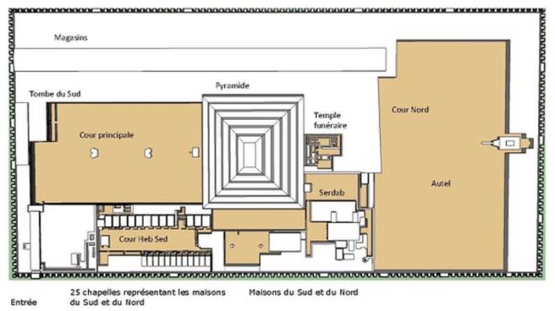 Les deux grandes chapelles représentent les maisons du Nord et du Sud de l'Égypte. Une autre cour de la fête Sed y a été symboliquement construite. Elles sont entourées de 6 petites chapelles qui représentent les deux types d'habitations du royaume. Une autre chapelle est adossée au temple funéraire.